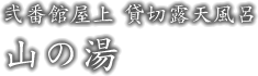 弐番館屋上に設置されている貸切専用露天風呂「山の湯」。御影石の湯船。右手遠くに、箕輪山が望め、正面には荒川の清流が流れております。夜ともなると満点の星空をご堪能いただけます。