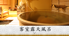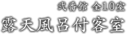 弐番館の客室には、全室客室露天風呂がございます。“信楽焼(陶器)”のらかな肌ざわりです。